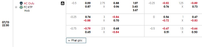 Soi kèo châu Á, kèo AC Oulu vs KTP Kotka