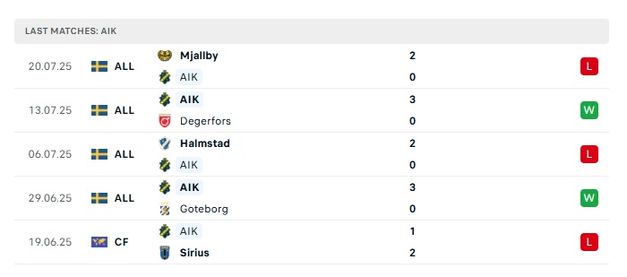 - Phong độ gần đây AIK Solna