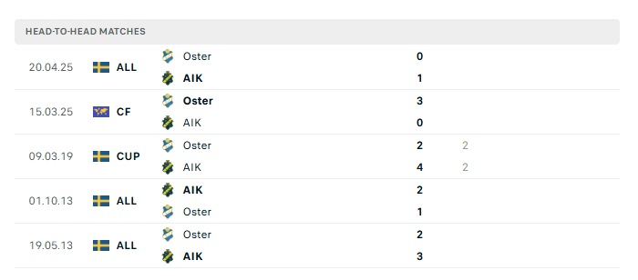 Lịch sử đối đầu AIK Solna vs Osters