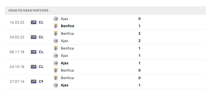 - Kèo tỷ số H2 Ajax vs Benfica: 0-0
