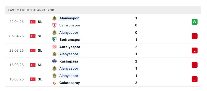 - Phong độ gần đây Alanyaspor