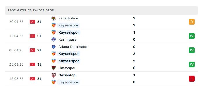 - Phong độ gần đây Kayserispor