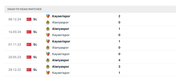 Lịch sử đối đầu Alanyaspor vs Kayserispor
