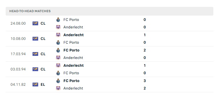 Lịch sử đối đầu Anderlecht vs Porto