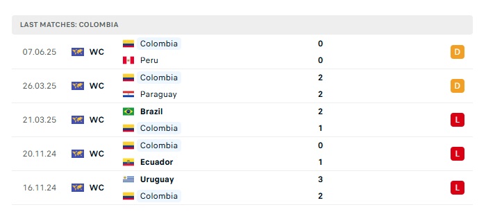 • Phong độ gần đây Colombia