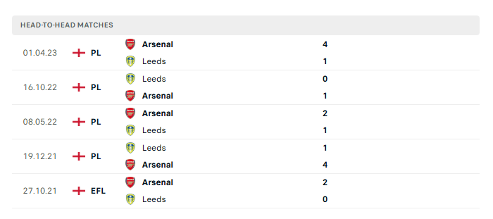Lịch sử đối đầu Arsenal vs Leeds Utd