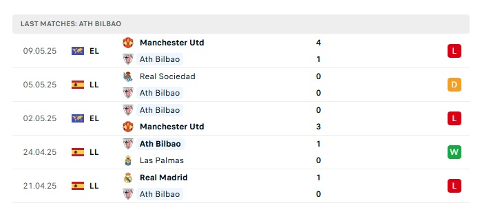- Phong độ gần đây Athletic Bilbao