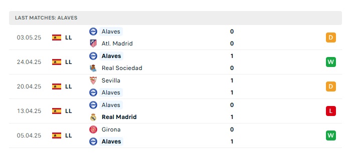 - Phong độ gần đây Alaves