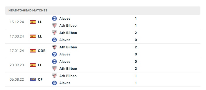Lịch sử đối đầu Athletic Bilbao vs Alaves