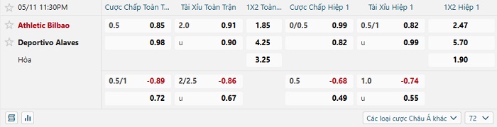 Soi kèo châu Á, kèo Athletic Bilbao vs Alaves