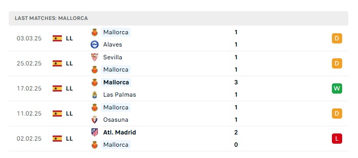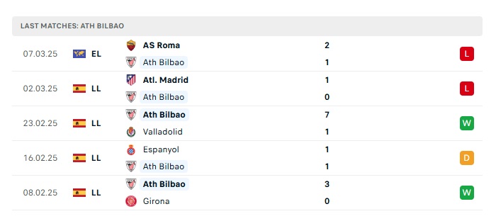 Phong độ gần đây Athletic Bilbao vs Mallorca