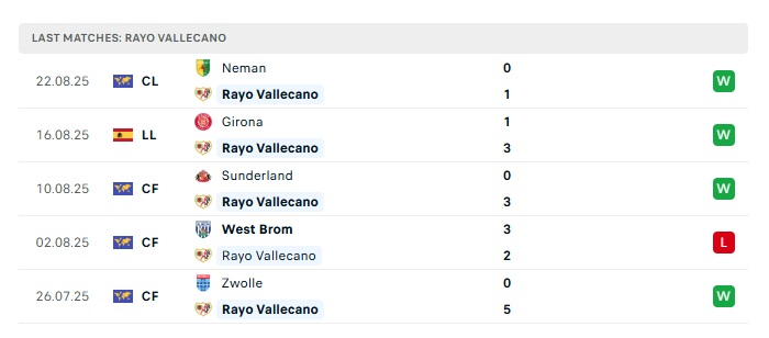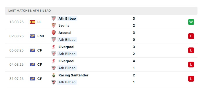 Phong độ gần đây Athletic Bilbao vs Rayo Vallecano