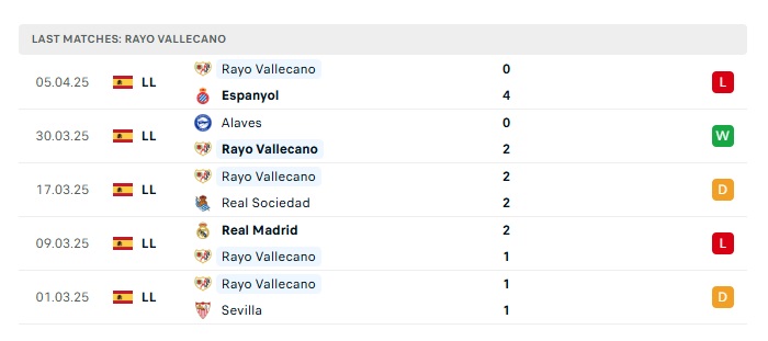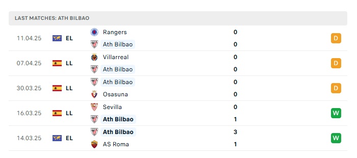 Phong độ gần đây Athletic Bilbao vs Rayo Vallecano