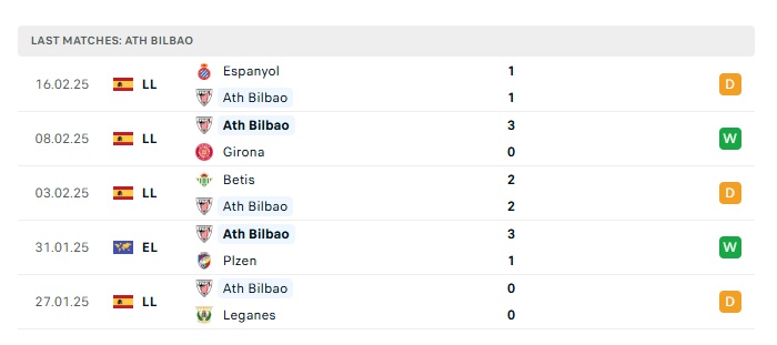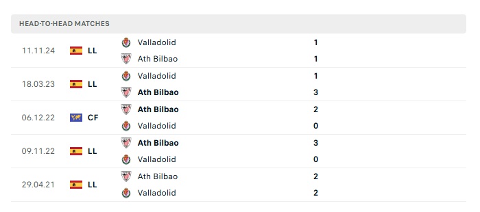 Phong độ gần đây Athletic Bilbao vs Valladolid