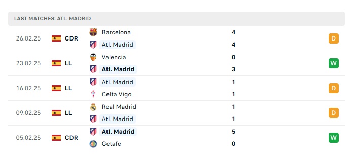 - Phong độ gần đây Atletico Madrid
