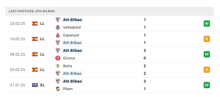 - Phong độ gần đây Athletic Bilbao