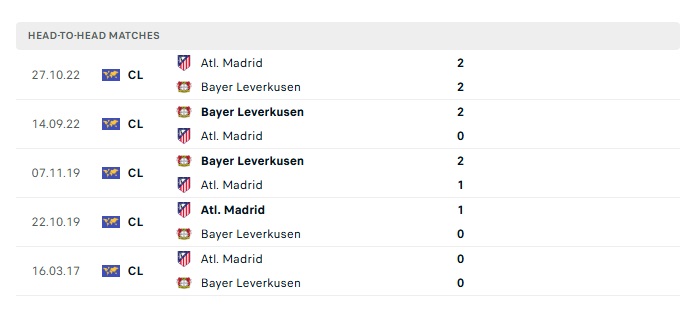 Lịch sử đối đầu Atletico Madrid vs Bayer Leverkusen