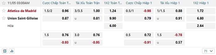 Bảng tỷ lệ kèo bóng đá Atletico Madrid vs Union Saint-Gilloise