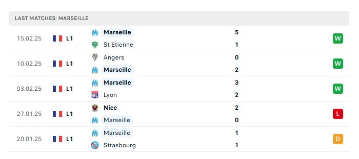 • Phong độ gần đây  Marseille