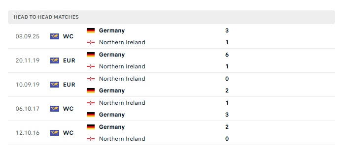 Tuy có phong độ kém là vậy nhưng nhìn chung, Đức vẫn có sức mạnh áp đảo đối thủ Bắc Ireland nên 3 điểm vẫn nằm trong khả năng của họ. Trong cả 7 lần đã gặp nhau ở quá khứ của hai đội, Đức toàn thắng cả 7. Ngoài ra thì trong 4 trận sân khách gần nhất của Đức, họ cũng chỉ thua 1, hòa 1 và thắng 2. Do đó, kèo châu Âu trận đấu hôm nay sẽ có Đức chính là lựa chọn đầu tư an toàn nhất.