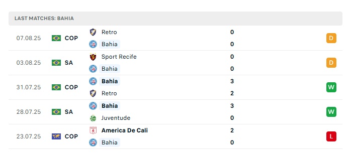 - Phong độ gần đây Bahia