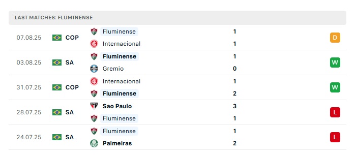 - Phong độ gần đây Fluminense