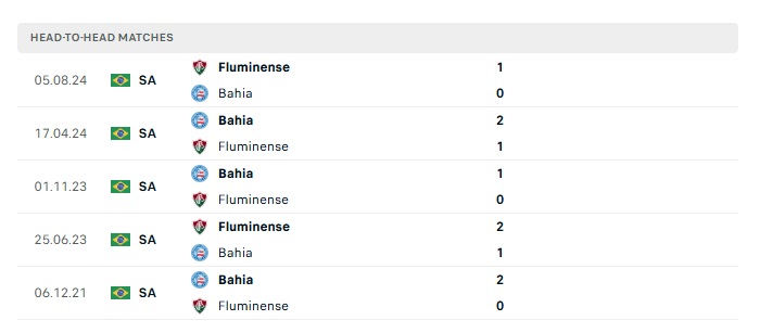 Lịch sử đối đầu Bahia vs Fluminense