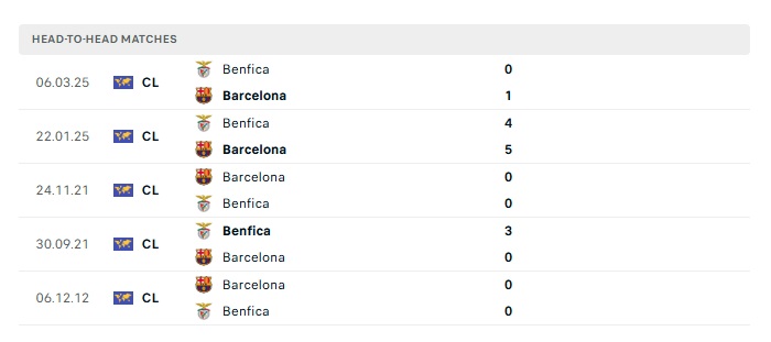 - Kèo tỷ số H2 Barcelona vs Benfica: 2-0