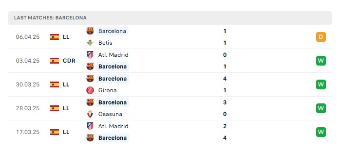 Với những gì được chứng kiến trong thời gian qua, ai cũng nhận ra Barcelona có phong độ hoàn toàn áp đảo đối thủ. Trong 10 trận đấu gần nhất của Barcelona, họ đã có cho mình chuỗi trận bất bại với 8 thắng và 2 hòa. Trong khi đó thì Dortmund lúc này đang chỉ thắng 3, hòa 1 và thua 2 trong 6 trận đấu gần nhất. Qua đó, trận đấu hôm nay khả năng cao sẽ khép lại với đội chủ nhà là lựa chọn an toàn nhất.