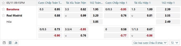 Soi kèo châu Á, kèo Barcelona vs Real Madrid