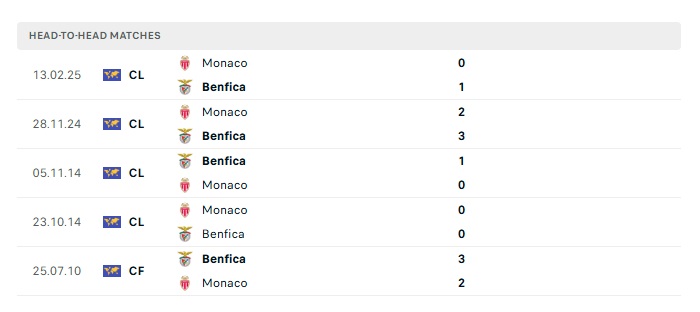 - Kèo tỷ số H2 Benfica vs Monaco: 2-0