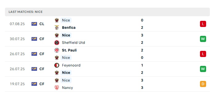 Trong thời gian vừa qua, phong độ thi đấu của hai đội cũng có phần chênh lệch nhau. Với Benfica, họ được ghi nhận đã thắng 4 và chỉ thua 1 trong 5 trận đấu gần nhất của mình. Trong khi đó thì Nice đã thua 2/5 trận gần nhất, còn lại là 1 hòa và 2 thua. Do đó, các chuyên gia đều tin rằng đội chủ nhà Benfica sẽ có cho mình 1 chiến thắng trọn vẹn trước đối thủ ở vòng đấu này nếu họ muốn.