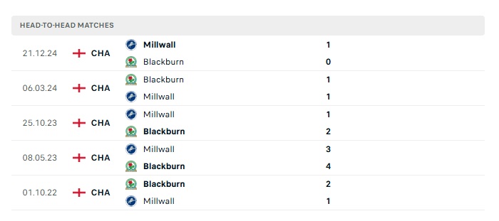 • Kèo tỷ số H2 Blackburn Rovers vs Millwall: 0-0