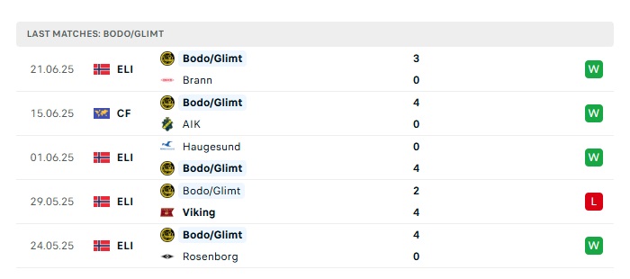 Phong độ gần đây Bodo Glimt vs Sarpsborg