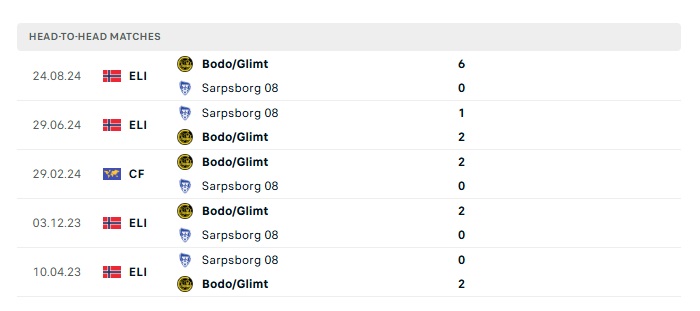 Lịch sử đối đầu Bodo Glimt vs Sarpsborg