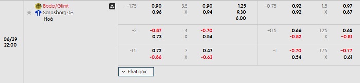 - Kèo tỷ số H1 Bodo Glimt vs Sarpsborg: 2-0