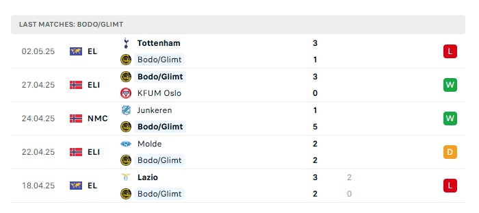 Phong độ gần đây Bodo Glimt vs Tottenham