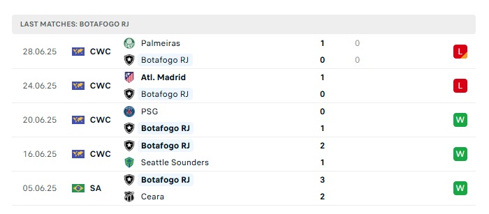 Phong độ gần đây Botafogo vs Vitoria/BA