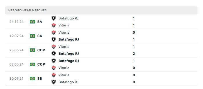 Lịch sử đối đầu Botafogo vs Vitoria/BA