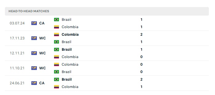 - Kèo tỷ số H2 Brazil vs Colombia: 1-0