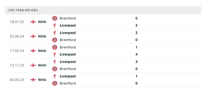 - Kèo tỷ số H1 Brentford vs Liverpool: 0-0