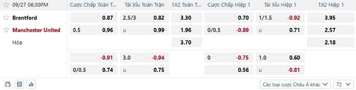 Soi kèo châu Á, kèo Brentford vs Man Utd