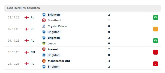 - Phong độ gần đây Brighton