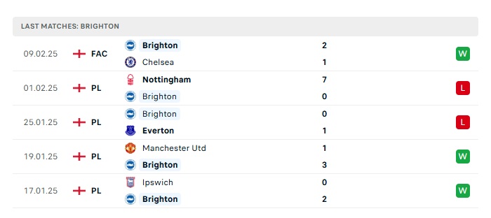 Vừa chạm trán nhau tại FA Cup thì ngay ở lượt trận tiếp theo, Brighton tiếp tục đụng mặt Chelsea và đây sẽ là một rào cản cực lớn với họ. Hiện tại, Brighton đang có mặt ở vị trí thứ 10 trên BXH với 34 điểm sau 24 vòng đấu. Trong khi đó thì Chelsea sau 24 lần ra sân đã có được vị trí thứ 4 cùng 43 điểm. Như vậy, đội khách hoàn toàn đủ tự tin để đòi lại món nợ vừa nhận vừa qua.