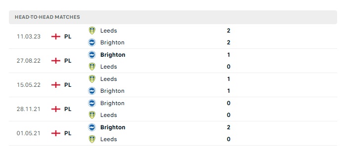 Lịch sử đối đầu Brighton vs Leeds Utd