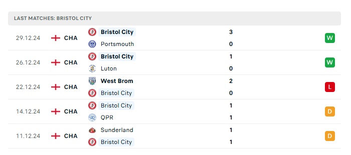 - Phong độ gần đây Bristol City