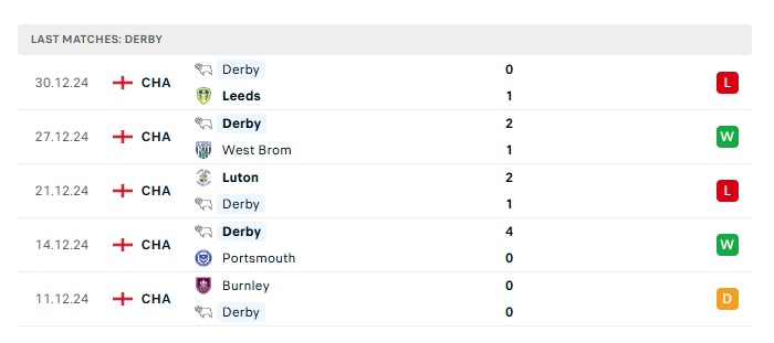 - Phong độ gần đây Derby County