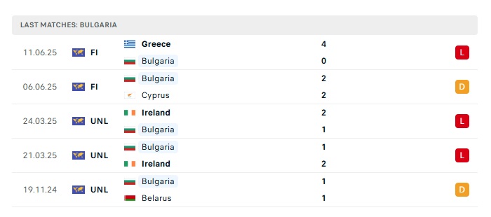 - Phong độ gần đây Bulgaria