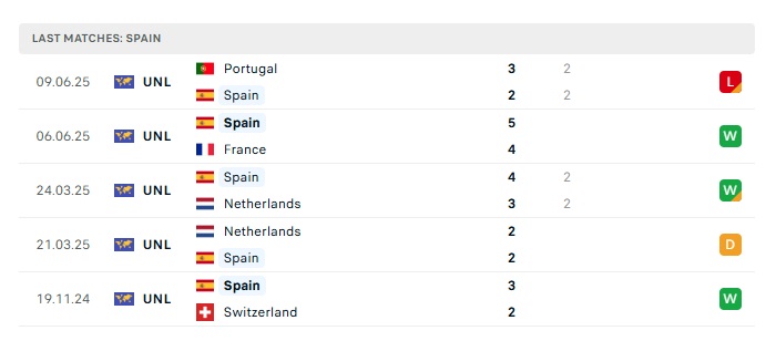 - Phong độ gần đây Tây Ban Nha