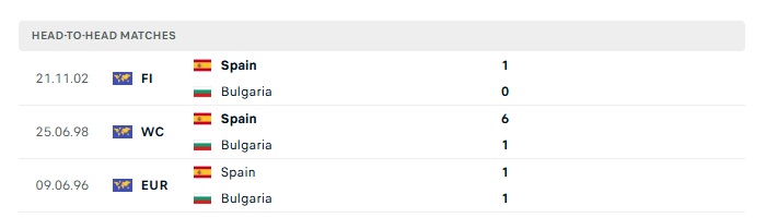 Lịch sử đối đầu Bulgaria vs Tây Ban Nha